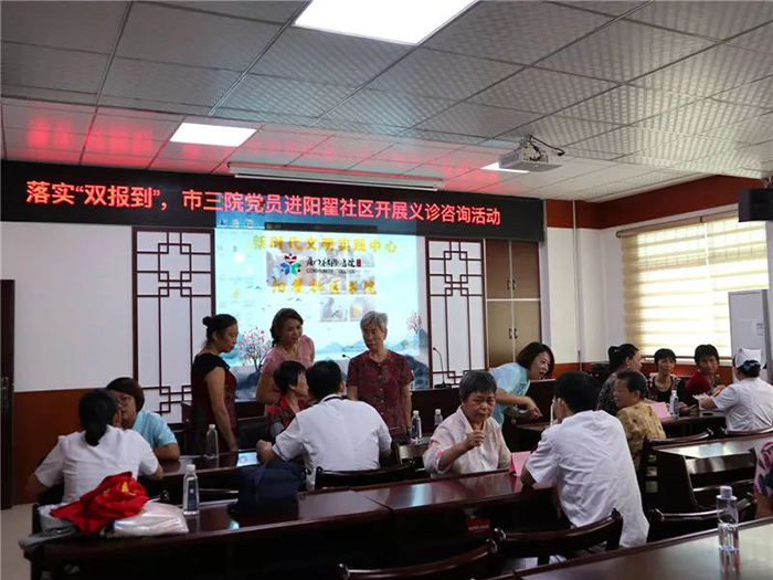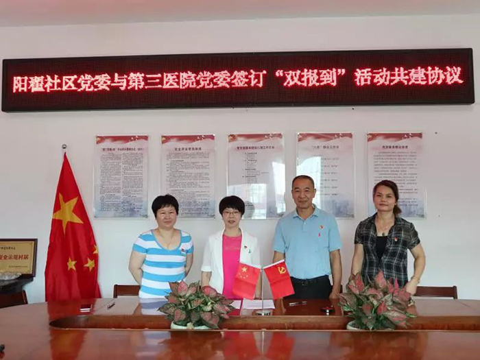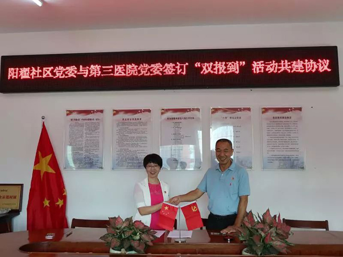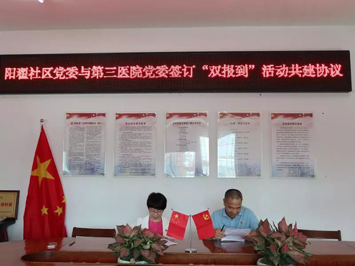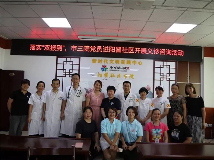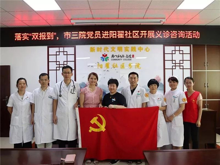 党委积极贯彻落实《中共厦门市同安区委组织部关于开展“深化双报到、为民解难题”活动的通知》精神,于7月15日前完成249名在职党员到所在居住社区报到任务;于7月12日到祥平街道阳翟社区党委报到,双方党委签署《联建共建协议书》,明确双方共建内容,充分发挥三院党员医护人员先锋模范作用,为社区群众开展义诊、急救技能培训及健康教育等活动,努力为人民群众提供全方位全周期健康服务。