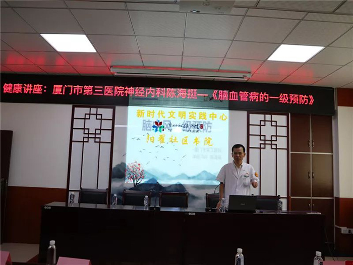 活动中,党员医生、神经内科副主任医师陈海挺首先做了题为《脑血管病的一级预防》的健康讲座,通过生动鲜活的闽南语宣讲脑中风的症状、预防举措等,社区老人感慨地说:“用闽南话讲解让我们不仅听得更明白,也让我们知道预防胜于治疗的重要性。”