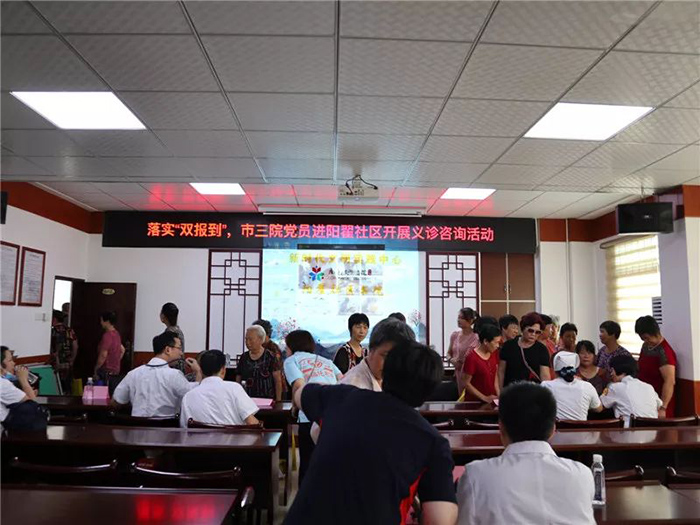 7月18日,伦理片 党员医护人员来到阳翟社区开展义诊咨询活动,这也是伦理片 党委按照厦门市“不忘初心、牢记使命”主题教育深化“双报到”的部署安排,推动在职党员到小区报到,驻区单位党组织到社区报到的生动实践,也吹响了伦理片 党员进社区“双报到”的集结号。
