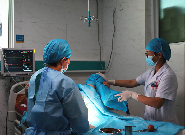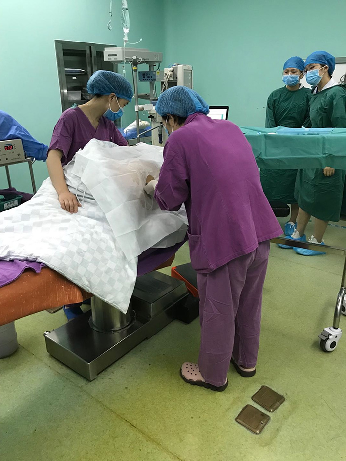 眼看胎儿的头在产道回旋,并随着产妇的宫缩向产道出口游近,但产妇却使不上力,李燕妮副主任医师和助产士立即帮助产妇摆出合适她的分娩**,利于胎儿分娩。