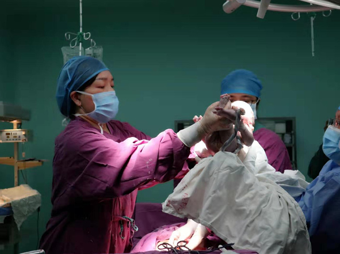 9点54分 ,一位6斤重的健康女婴出生了,当所有人的目光都转到婴儿身上时,手术室的另一边则是徐彩临主任做最后的手术收尾。