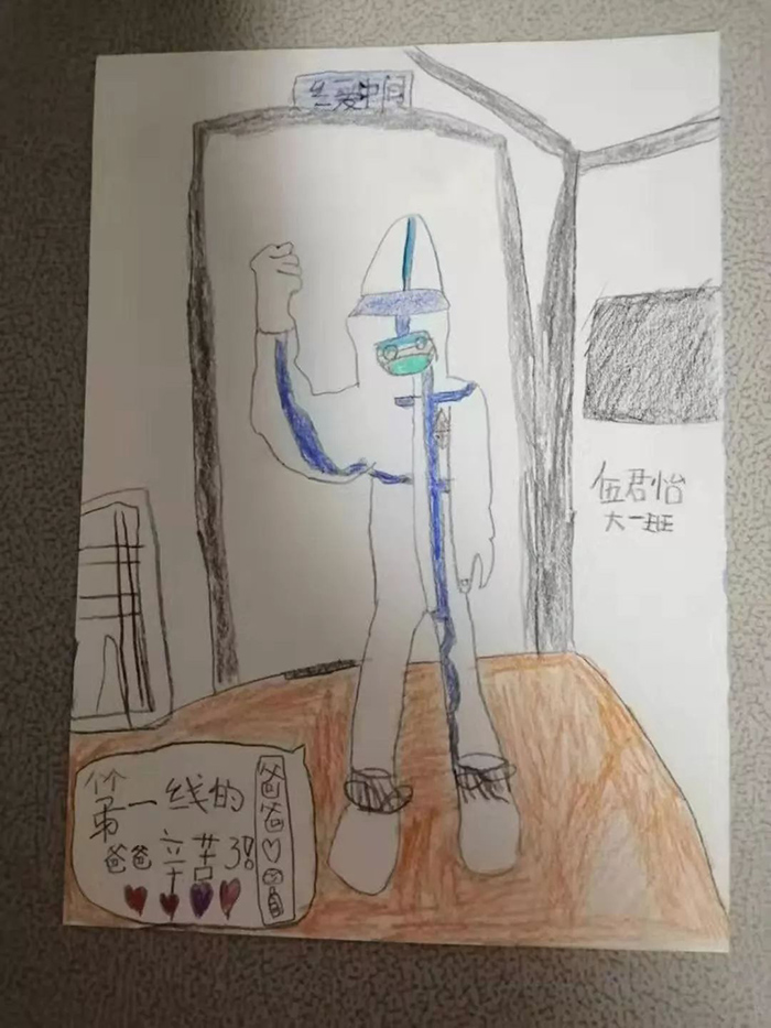 厦门大学附属第一伦理片 杏林院区肺科副主任伍定辉基本住伦理片 ,他的爱人在厦大伦理片 急诊科,看发热门诊,夫妻俩都在一线。他们的女儿在家画了一幅画向父亲表达内心的骄傲。