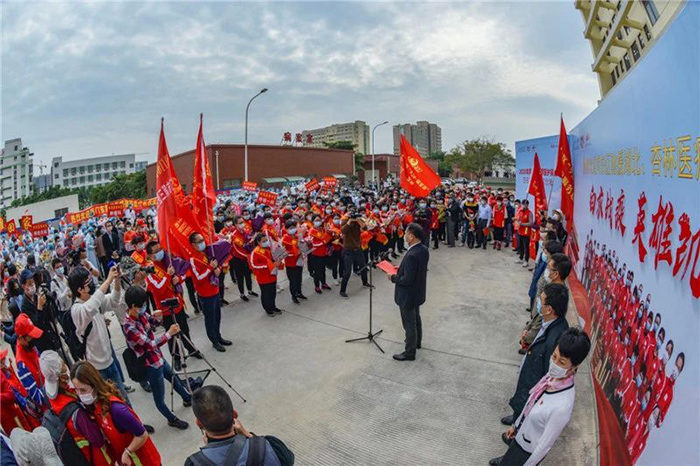 林国财表示,三院等全区医护人员用生命谱写了英雄赞歌,出色取得了“出院患者零复阳返院、医疗护理零差错、病区零投诉、医护人员零感染”的可喜成绩,展现了同安儿女的好品质、好作风、好形象、好口碑,“你们是同安的骄傲,是人民的功臣,是真正的英雄,是学习的楷模,”希望大家好好休息、调理身心、养精蓄锐,以更加饱满的精神状态重回工作岗位。
