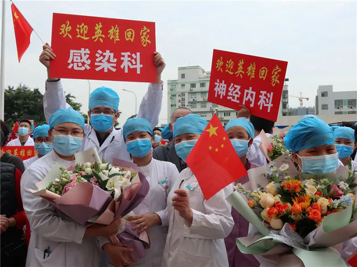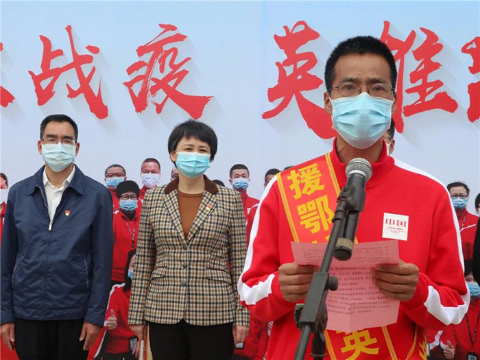 伦理片 领队、党委委员陈辉民代表驰援武汉医疗队发言。他说,如约平安而归,每个人都满怀感激,内心由衷地感谢市区政府部门和伦理片 的关爱和给予的强大后盾支持,感恩家人朋友们的默默支持和关心。