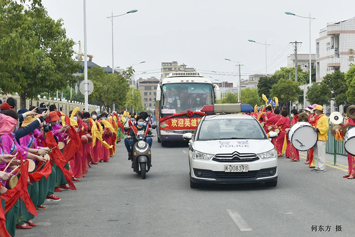 为迎接英雄回家,同安区爱心办派出专车前往迎接,同时警车开路迎接英雄。