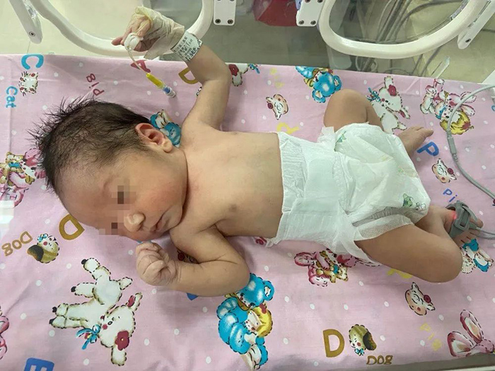 小婴儿到达新生儿科时,全身皮肤苍白,没有哭声、体温不升,血压测不出,呼吸弱至30次/分,心率慢至80次/分,经皮血氧饱和度低至40%,儿科副主任医师游森水、护士长陈玉仁、值班医师黄秋萍、总责护士王亚兰、当班护士黄远程、王燕春、叶阿芬、赵艺敏以及潘丽芬护士一同全力参与抢救,立即为小婴儿进行新生儿心肺复苏、吸氧、吸痰、建立静脉通路、进行心电监护等一系列急救处理。由于小婴儿出生时脐带已经断裂,切口不平整,陈玉仁护士长又特地嘱咐医嘱护士杨阿纯打电话邀请产房的护士前来科室断脐。经过一番抢救,小婴儿面色慢慢转红,生命体征也慢慢平稳起来。