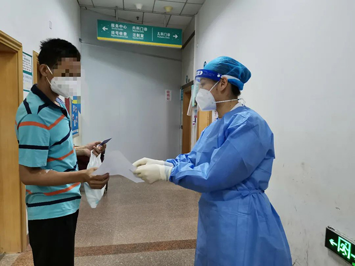 记者了解到,作为疫情防控重要措施之一,预检分诊主要负责筛查有新冠肺炎症状的可疑人员,分流相关病人到发热门诊、急诊或者普通门诊就诊。为此,预检分诊工作人员必须对前来就诊的患者及陪伴人员问询流行病学史、个人信息等,把好入院第一关。