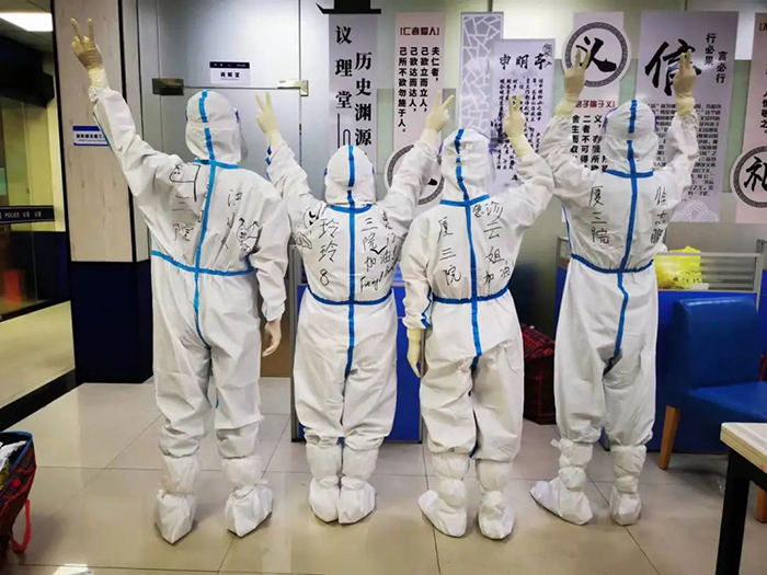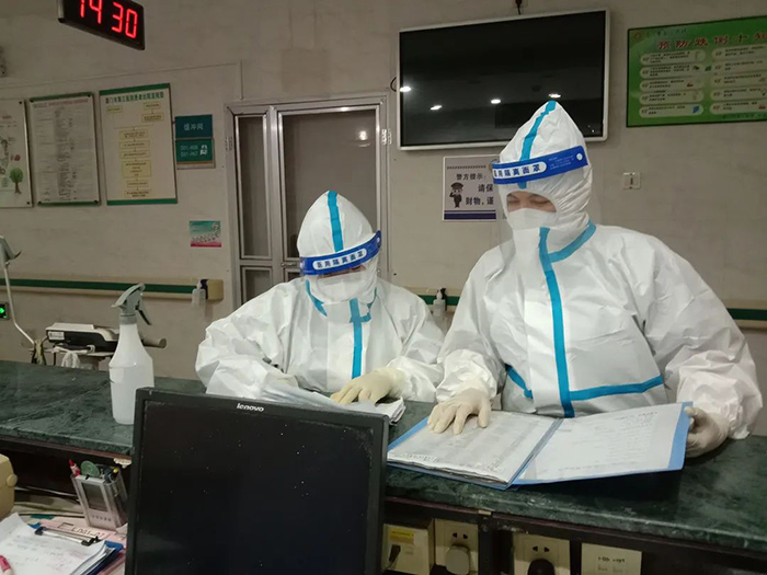 在此次抗击疫情中,党委副书记、院长彭小松一直在一线指挥院内疫情防控工作,因劳累过度,晕倒在工作岗位上。苏醒的当晚,躺在病床上的他就召集伦理片