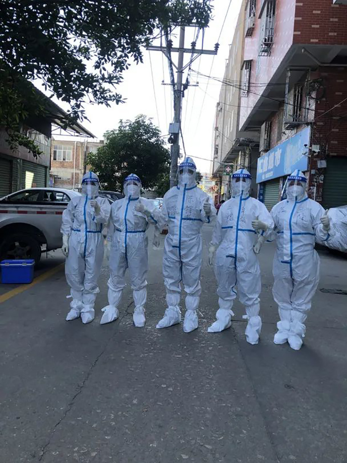 你们在前方冲锋陷阵 我们在后方保“家”护航 从9月12日起,全院进入战时状态,所有行政后勤职能科室人员,夜以继日、连续奋战,尤其是党员发挥先锋模范作用,带领科室人员做好人员组织调度、防护物资储备运送、病人家属和医务人员用餐、防控区域划分、安全保卫、院感培训、环境消杀、病人转运等,为疫情防控及临床救治提供全方位保障。