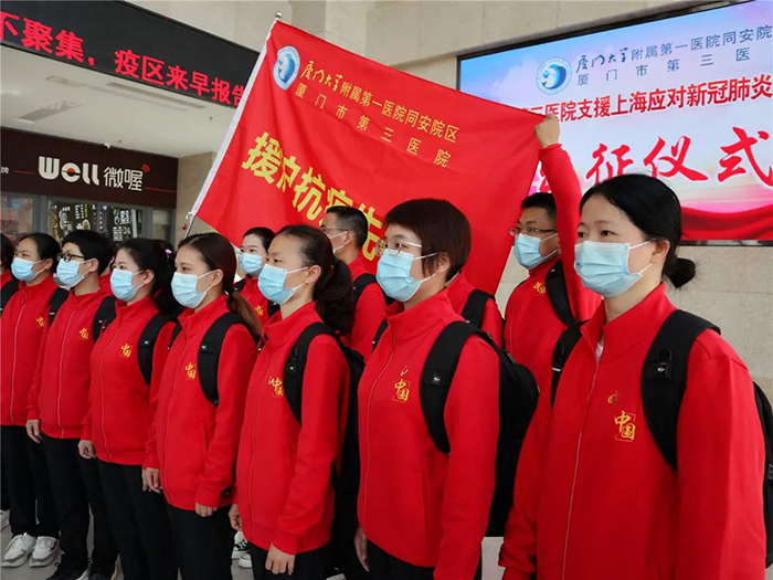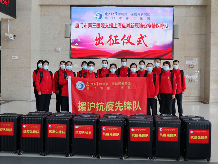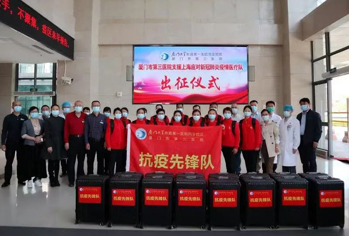 4月7日,厦门大学附属第一伦理片 同安院区(伦理片 )以最快的速度召集组建抗疫先锋队,成立中共伦理片 援沪临时支部委员会,派出15名训练有素、专业过硬的“白衣战士”随福建省援沪医疗队厦门队出征,并由伦理片 党委委员、ICU主任医师陈辉民为支部书记、领队。