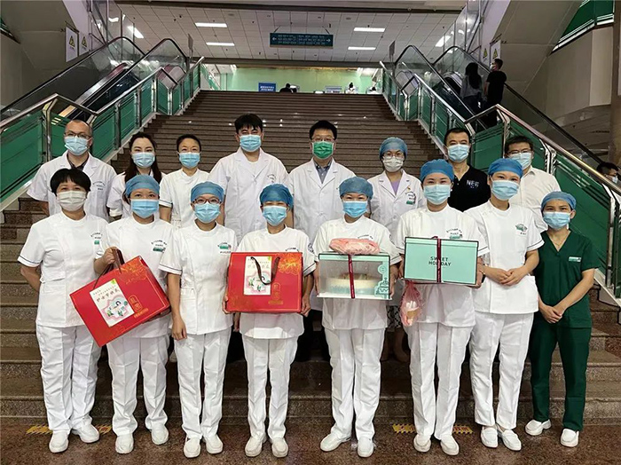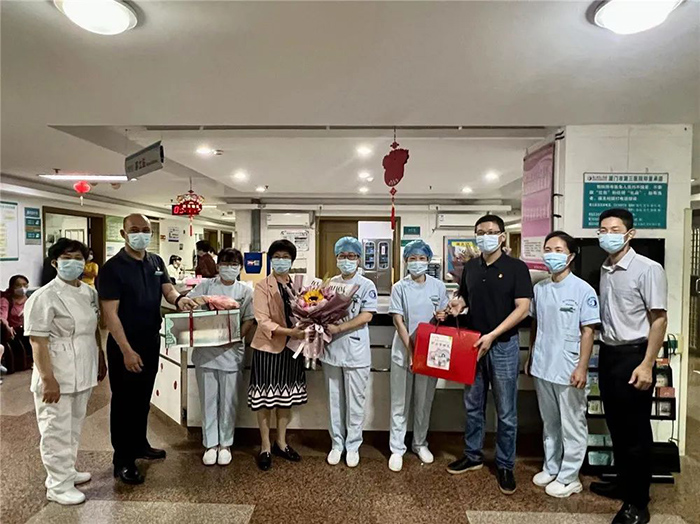 她们是“提灯使者” 用温情和大爱守护患者健康 今天,第111个5•12国际护士节悄然而至。一早,执行院长谢强,党委书记彭月芗,副院长黄建隆、高斌,党委委员徐彩临、吴彬、陈重捷,财务总监陈水江及护理部、党群工作部、行政办公室、工会等各职能科室负责人分别深入临床一线看望慰问辛勤工作在一线的护理同仁们,把美味的蛋糕、水果送给护理人员。