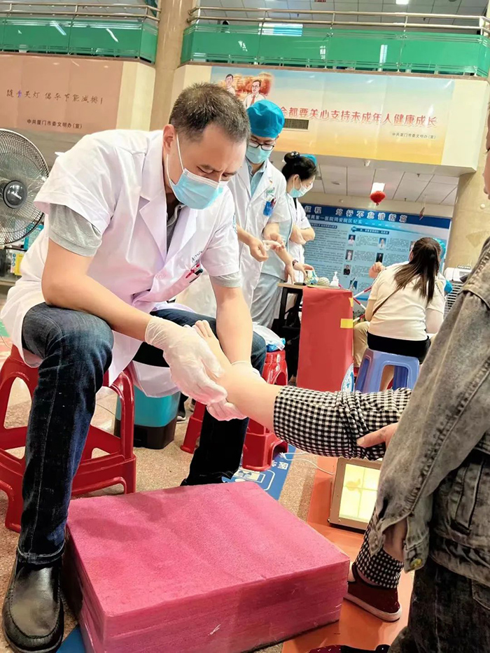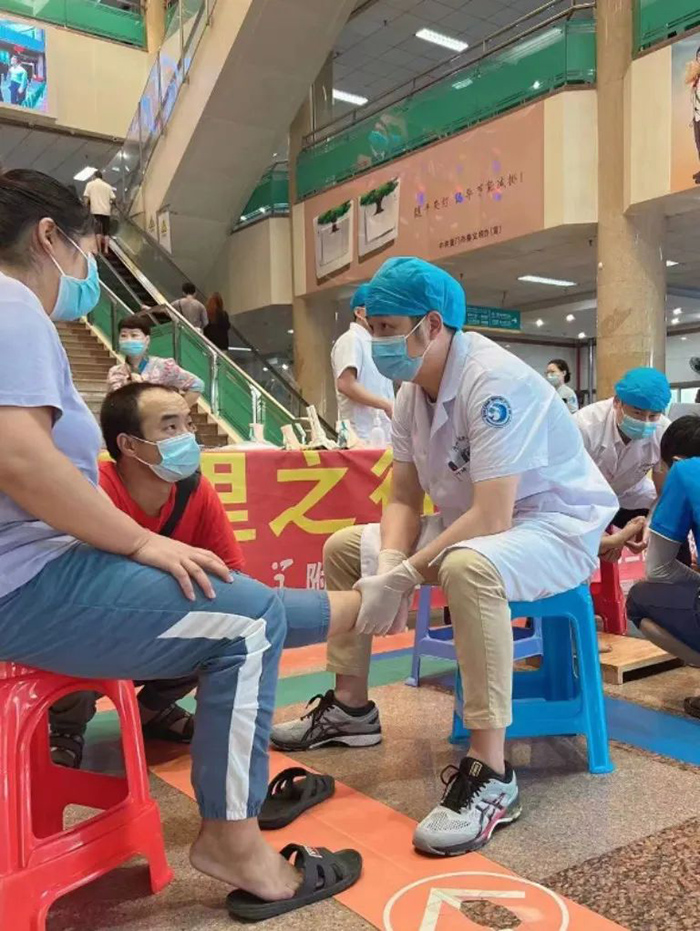 在科室主任肖松的带领下,足踝外科医护团队为市民们仔细看诊、足踝应力分析检测、答疑解惑。