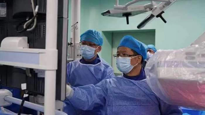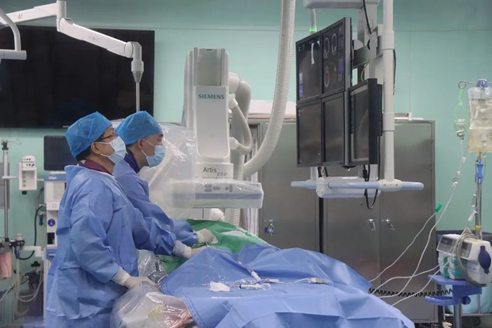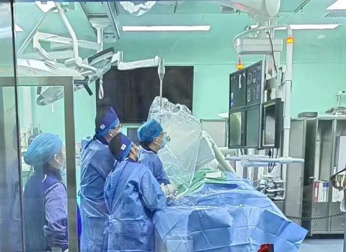 当天,手术用时4个多小时,仅在患者大腿根部留下一个2毫米左右的针眼,就把困扰陈先生已久的问题解决了。目前陈先生恢复良好,已能下地行走,一家人非常感谢心内科团队医护人员的精心治疗。