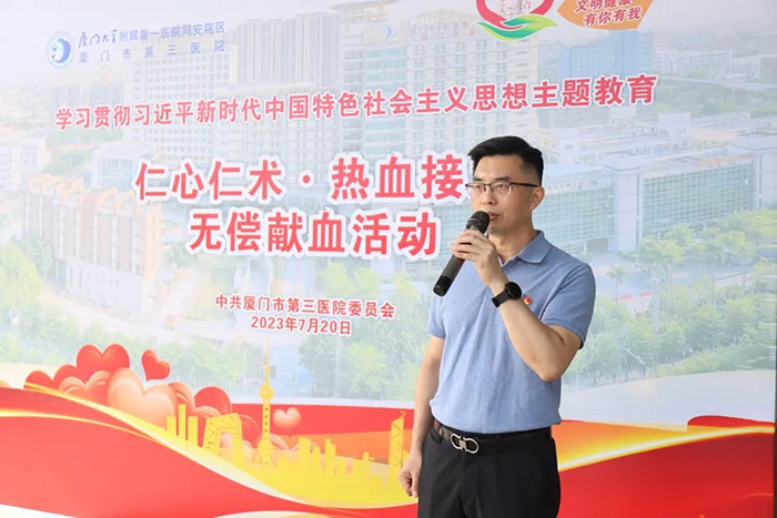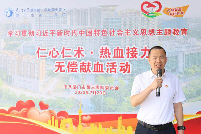 7月20日上午,伦理片 组织开展“仁心仁术·热血接力”无偿献血活动,市中心血站副站长张永昌、市第三伦理片 党委副书记李志安,市中心血站相关职能科室、伦理片 各职能科室负责人,以及参与无偿献血的医护人员、党员干部等参加活动。启动仪式由市第三伦理片 党委委员陈重捷主持。
