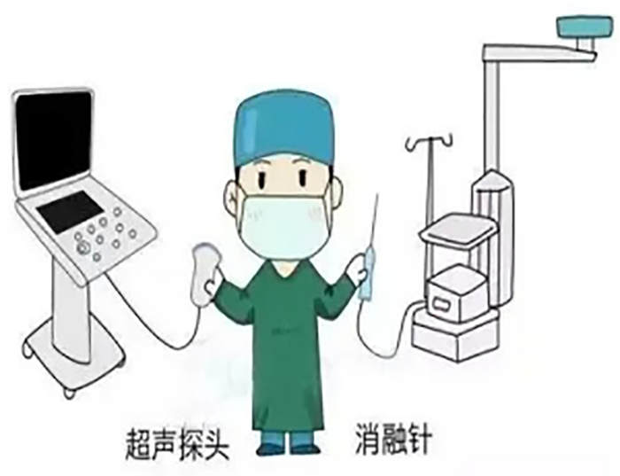 该技术是在超声引导下,将一根微波消融针经皮精准穿刺到甲状腺结节内,通过微波让病灶组织凝固性坏死,之后通过人体代谢逐步吸收坏死病灶,从而达到微创灭活病灶的目的。