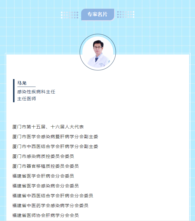 ■ 科室设有发热门诊、肝病门诊、肠道门诊,诊疗收治各型肝炎及传染性疾病患者,是厦门市设置较为全面的传染病临床专业科室。