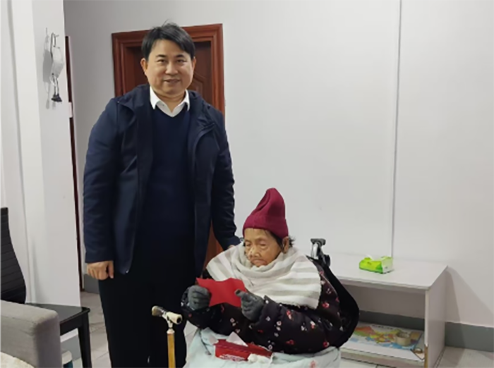 同时,仔细询问他们的近期生活与身体状况,了解需要解决的困难和问题,嘱咐他们保重身体。