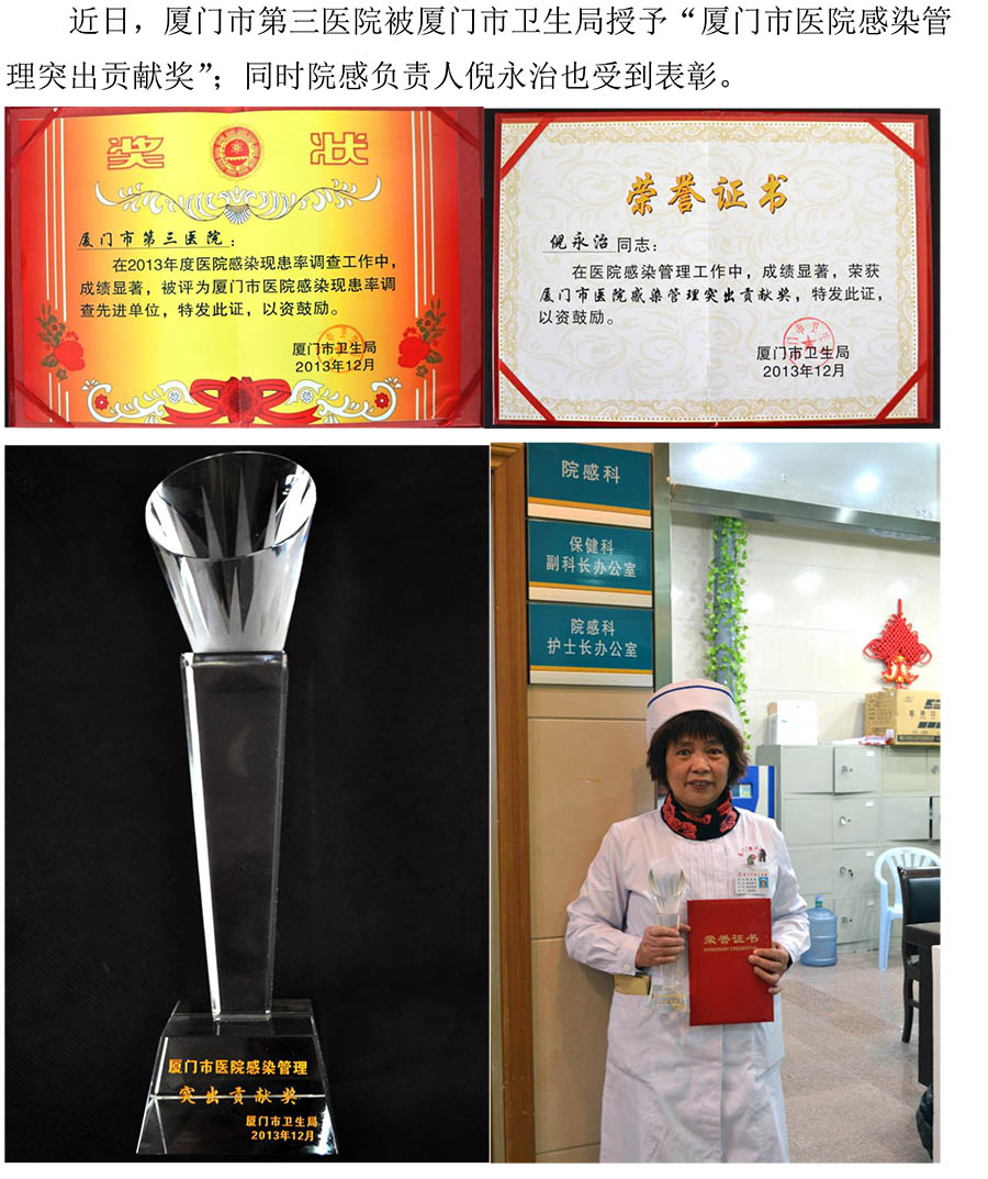 祝贺伦理片 荣获“厦门市伦理片 感染管理突出贡献奖”