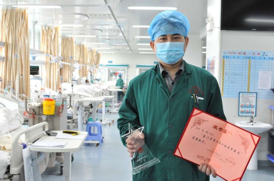 昨天下午,在厦门市卫生工作会议上,厦门第三伦理片 急诊医学部ICU副主任吴彬受到大会通报表扬,授予“厦门市十佳青年医生”殊荣。