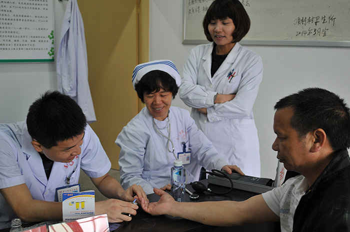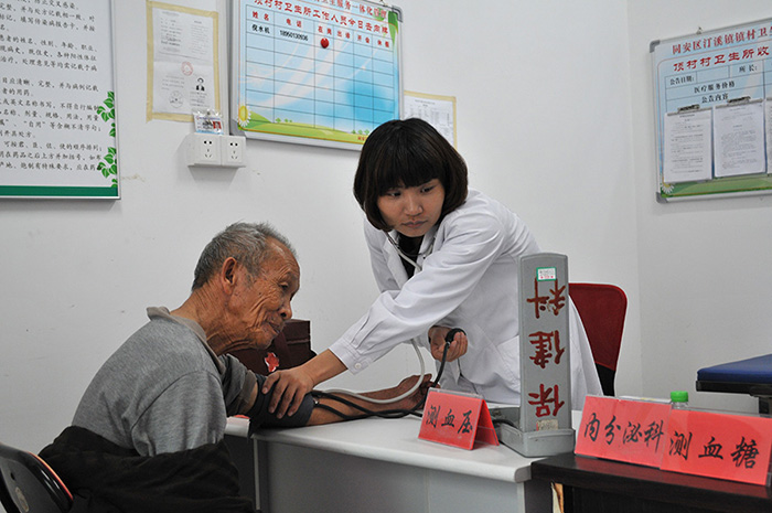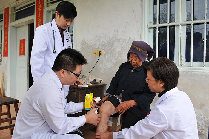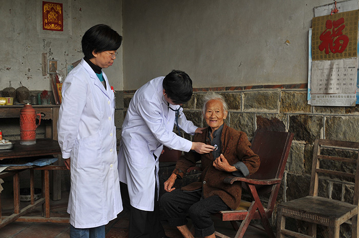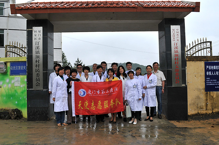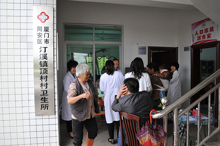 在顶村村村委会,医疗服务人员耐心地为前来问诊的村民量血压、把脉开方,并关心地叮嘱他们要注意如何用药和调理饮食,向他们传授一些医疗保健知识。顶村村是同安区距离城区相对遥远的山顶村,村里多数为留守老人和儿童,医疗卫生条件也相对较差。为了给群众提供更好的医疗服务,市第三伦理片