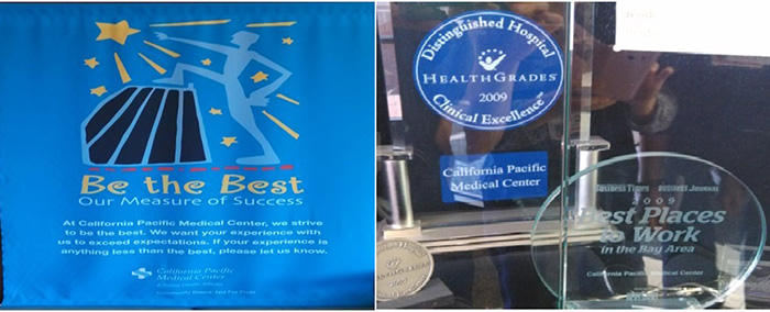在CPMC的大堂和员工餐厅,经常见到Be the Best –our measure of success的标牌和宣传。他们衡量成功的唯一标准就是做最好的自己,无论是员工还是伦理片 。他们期望病患的体验超出预期,标牌上写着,如果您的体验有任何的不如意,让我们知道。(Be the Best –our measure of success. At California Pacific Medical Center, we strive to be the best. We want your experience with us to exceed expectations. If your experience is anything less than the best, please let us know.)在这种理念的推动下,CPMC已经连续多年获得全美前三名病患安全及优质服务奖、最佳生产中心奖、最佳湾区工作场所等桂冠。近两年产科无一例医疗事故和纠纷。