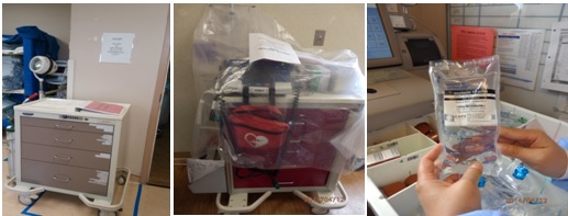 图:产后出血抢救车,病区抢救车配备除颤仪,电子取药车
