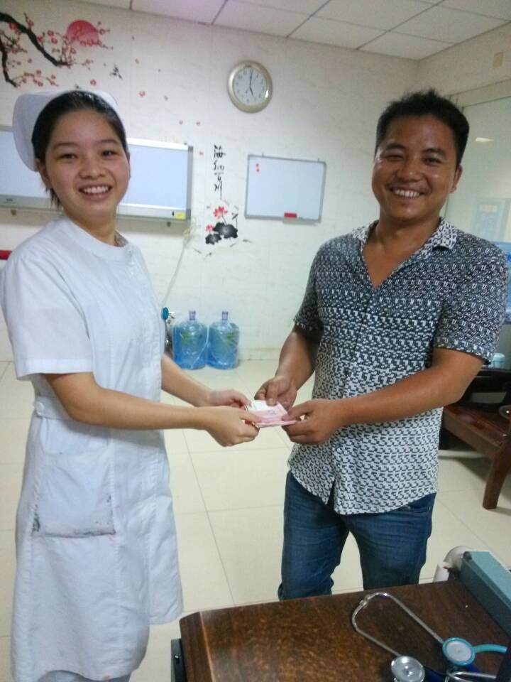 2014年9月24日下午,市三院呼吸一科护士童莉超在整理病房时,发现A11-01床上有3000元。“这么多钱,肯定是病人或家属带来交住院押金的,知道丢了钱还不急坏了。”童莉超一边心里想着,一边马上电话联系该病房的病人及家属是否丢失钱物,最后确认是A11-03床病人家属丢失了3000元,莉超护士及时把钱如数归还。病人家属感激不已:“童莉超护士拾金不昧的精神让我们太感动了,你们伦理片