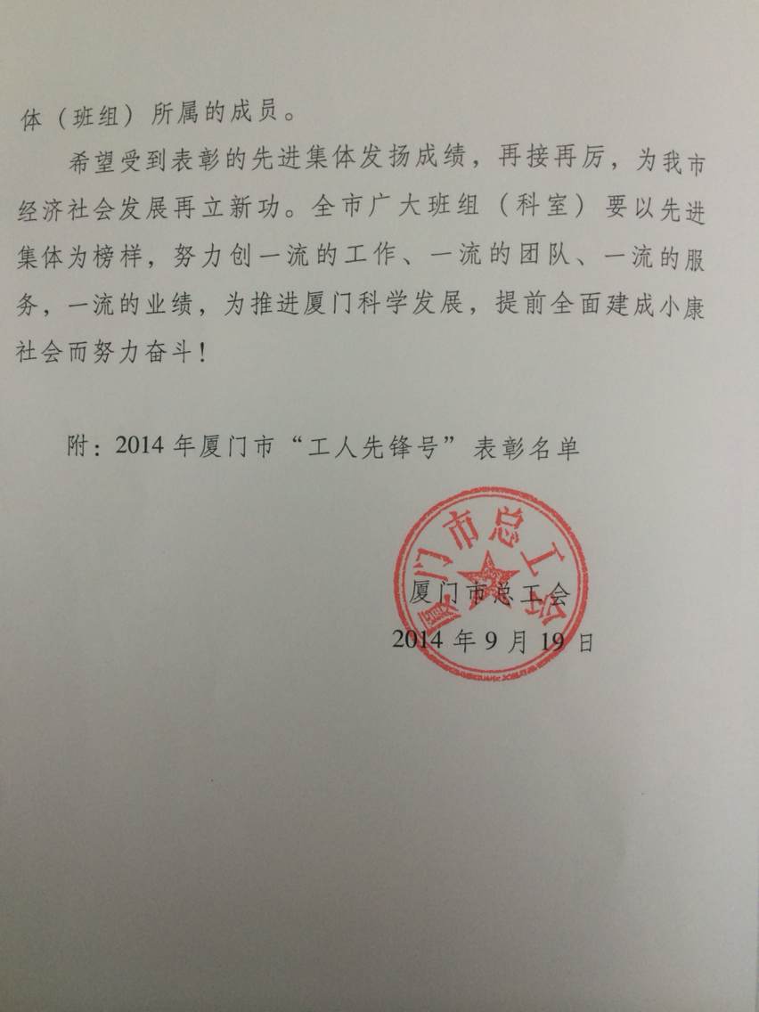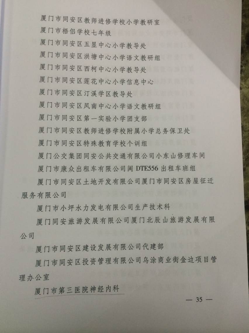 伦理片 神经内科被厦门市总工会评为“2014年厦门市工人先锋号”殊荣