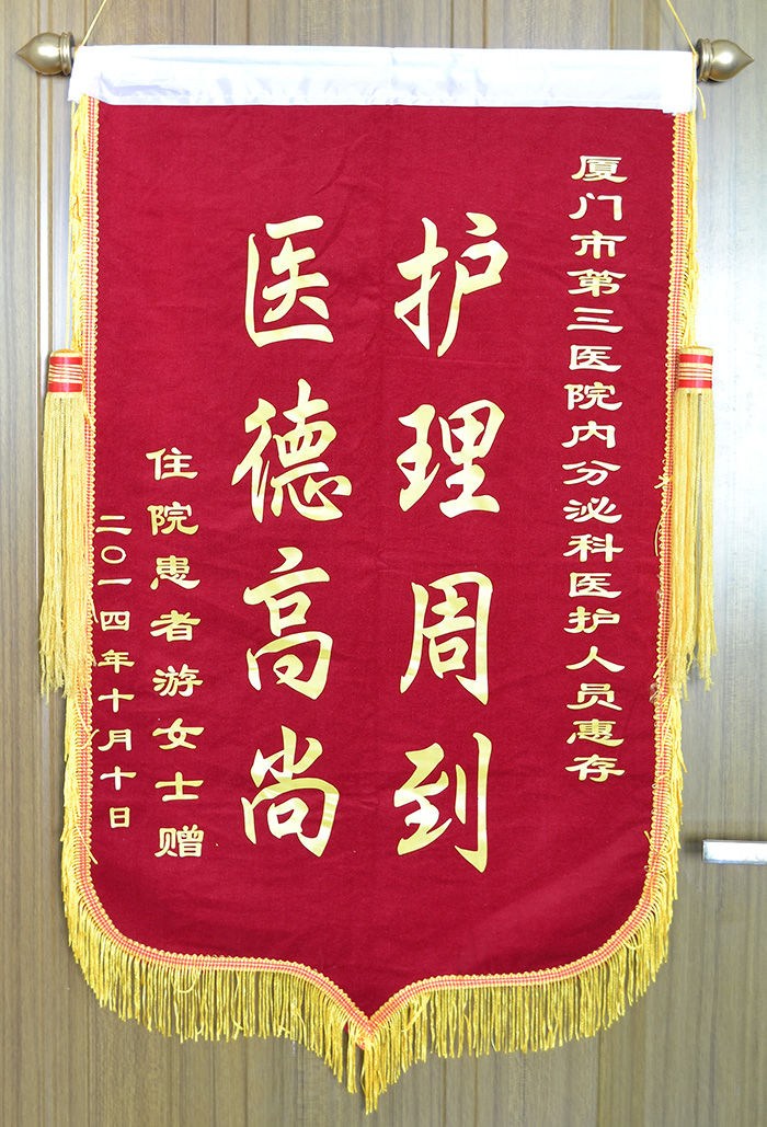 近日,第三伦理片 内分泌科收治一位七十八岁高龄老太太,患糖尿病,并发末稍神经病变,下肢瘙痒,疼痛厉害,经我们的精心治疗和护理,症状基本缓解,血糖控制平稳,今日出院,为了表示感谢,送来一面锦旗!