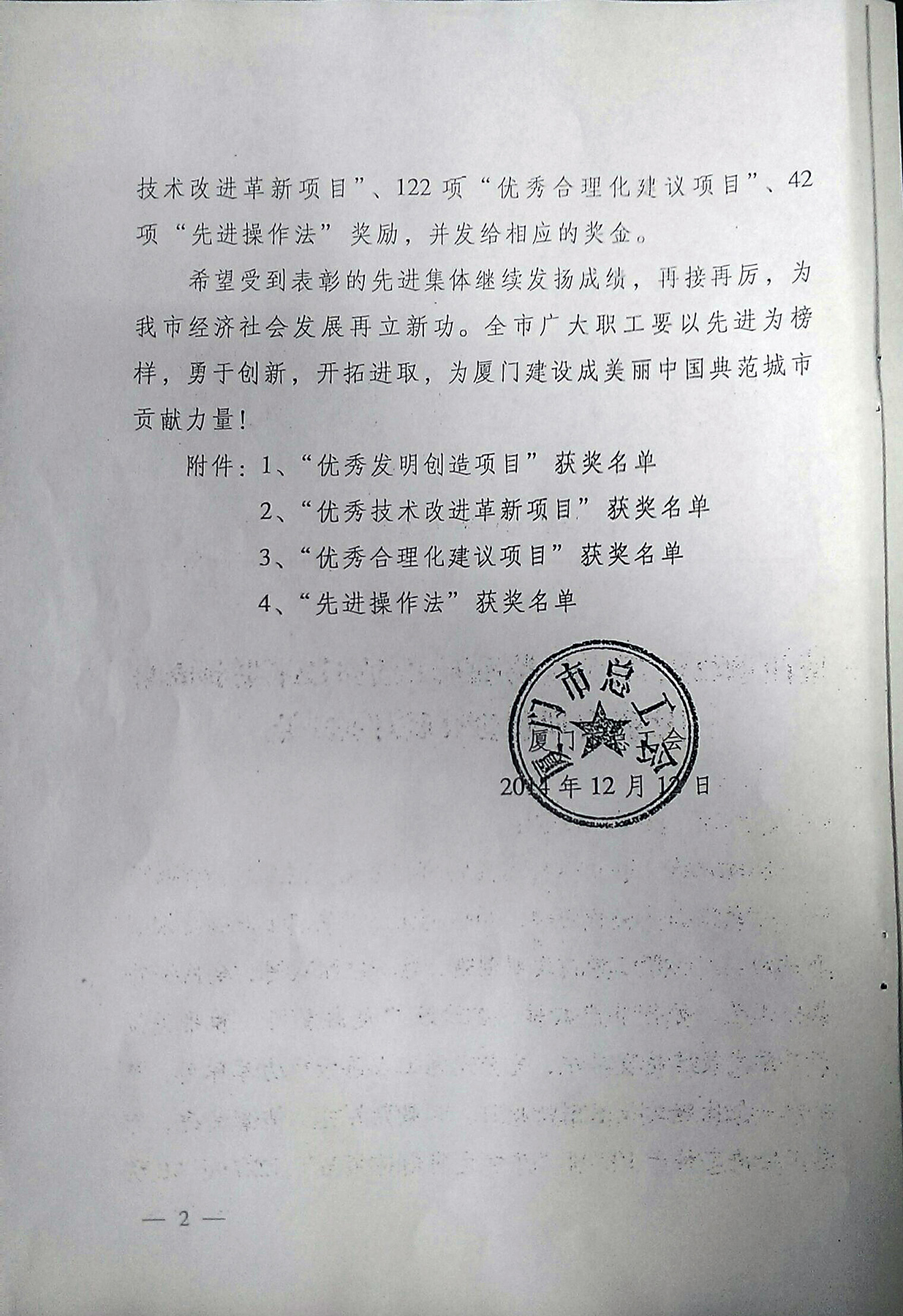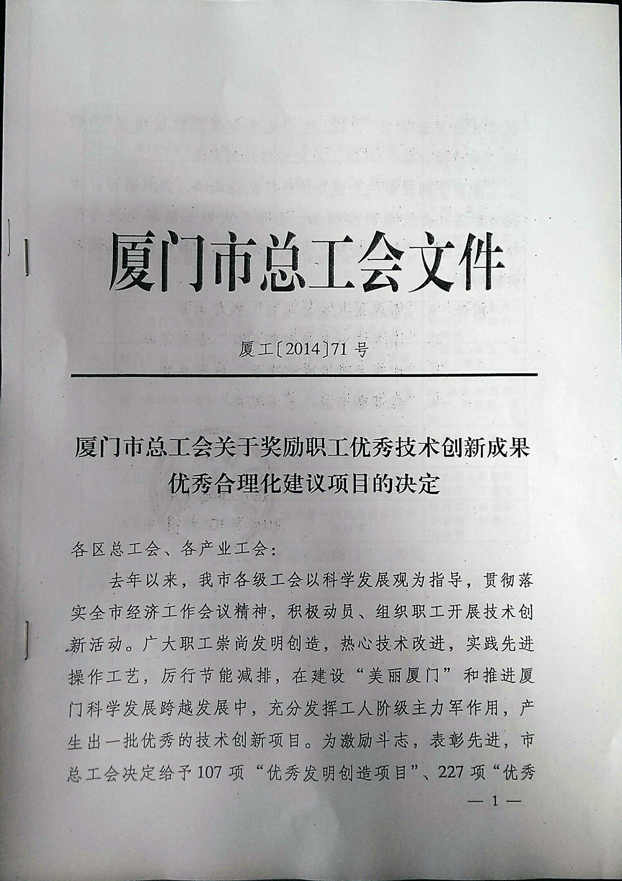 伦理片呼吸二科申报的“急诊经支气管镜一次置入二根新型双腔微导管治疗肺大咯血临床研究”项目被厦门市总工会授予“优秀技术改进革新项目”二等奖。