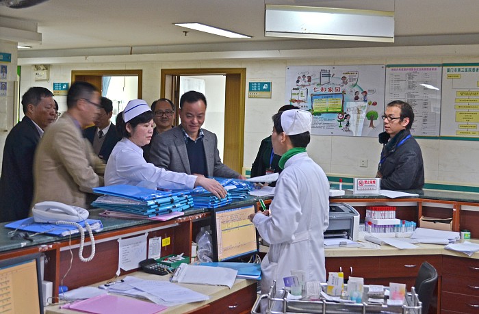 叶惠龙院长的工作汇报后,分成管理组、药学组、院感组、实地考核组、输血管理组、门急诊组等六组先后深入临床、医技及后勤等科室,通过抽调病例、查看资料、访谈病人、家属,抽考医务人员等形式展开全方面的检查。