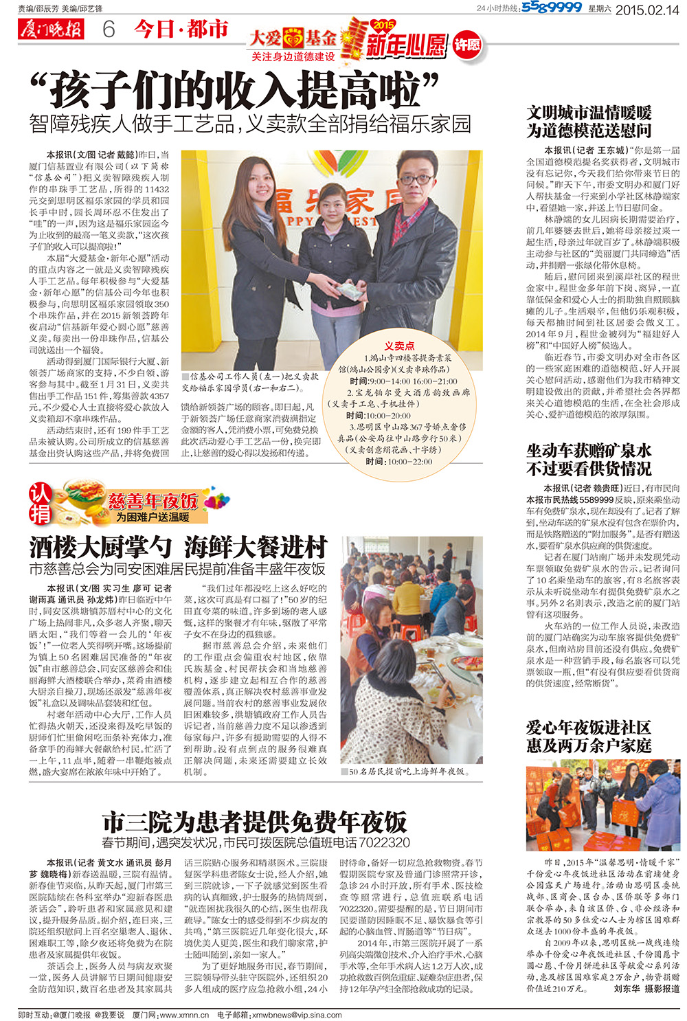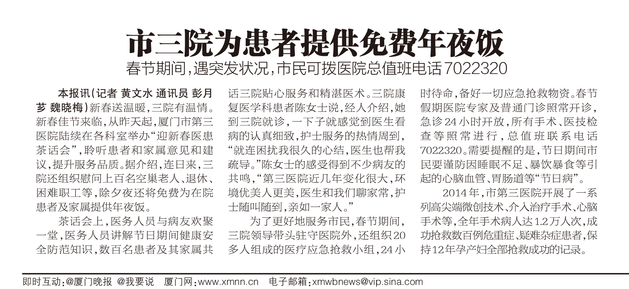 马上就要过大年了,伦理片 为在院没法回家过年的患者及家属免费提供年夜饭,精心布置休养环境,以特殊的工作方式呵护他们的身心健康,以贴心的服务方式与患者欢度新春佳节。