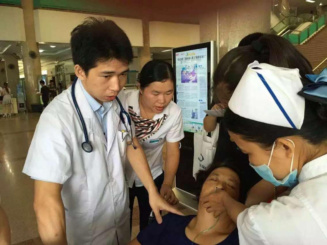 门诊内科医生胡永辉也闻讯参与抢救,各项抢救工作有条不紊地进行。据了解,苏阿姨曾患有高血压、心脏瓣膜病变病史,这次肺部严重感染导致发烧,伴有心律不齐及心衰。经过现场几分钟的紧急处理后,苏阿姨终于复醒过来,后续转入病房继续治疗。