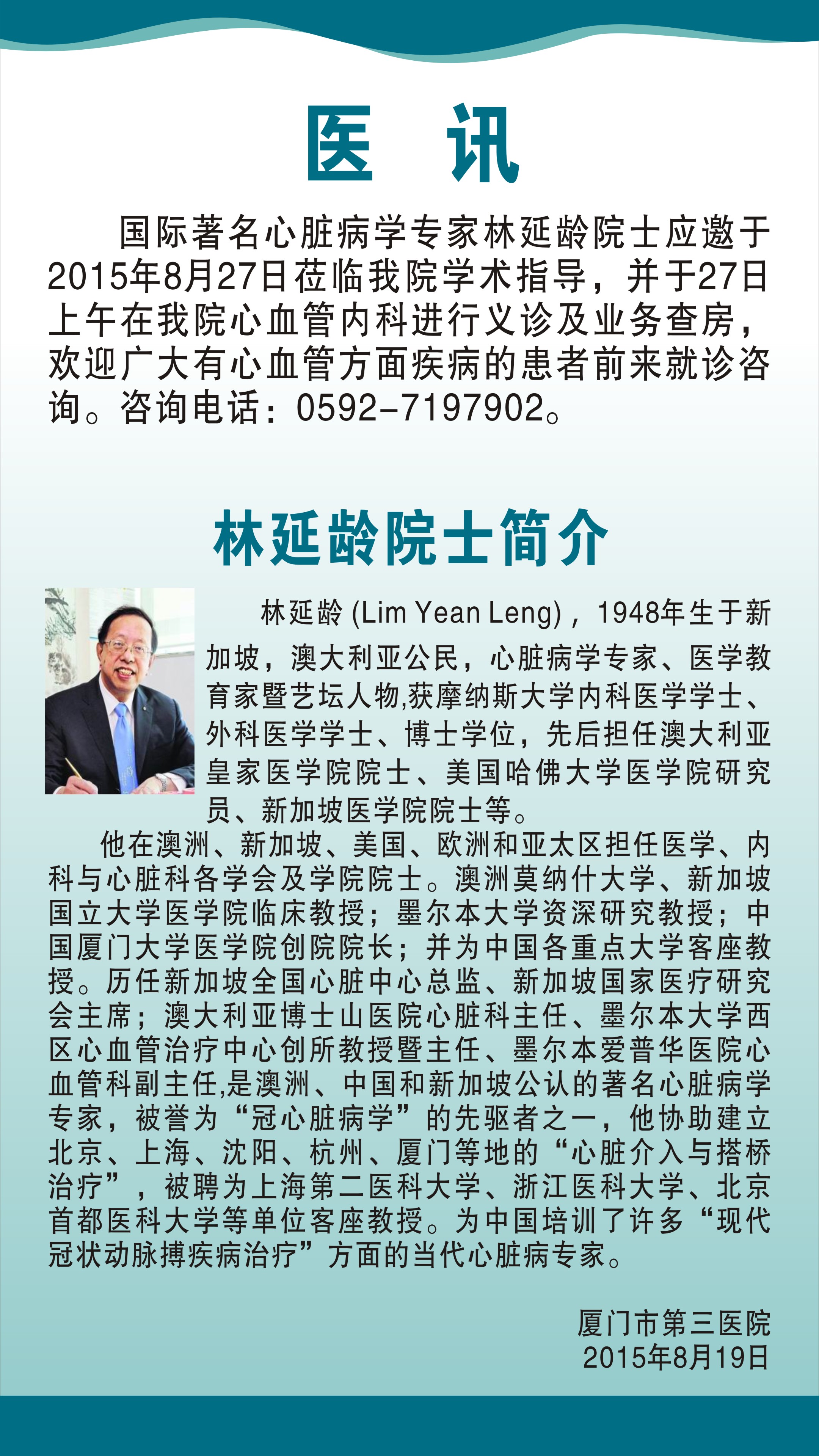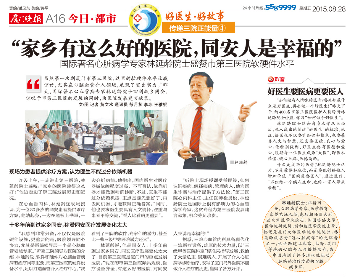 ——国际著名心脏病学专家林延龄院士盛赞市第三伦理片 软硬件水平