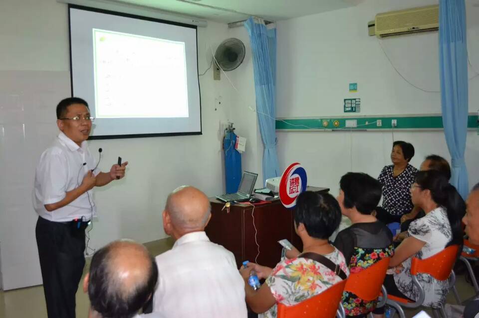 于2015年9月9日下午在病房三楼内分泌科举办鹭江讲坛,由内分泌科主任高允盛主讲《糖尿病基础知识及治疗》医学讲座。基层社区、卫生院医务人员、住院及门诊病人、伦理片