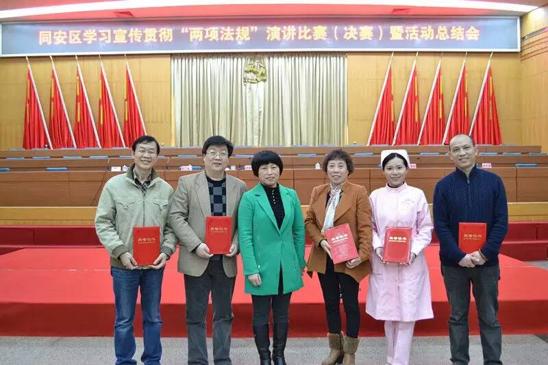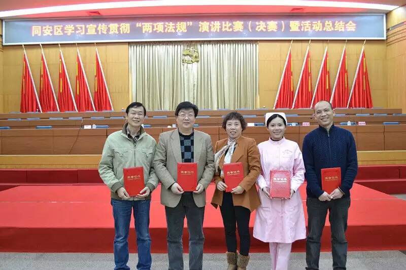 22日下午,同安区纪委、区委组织部、区委宣传部联合举办学习宣传贯彻“两项法规”演讲比赛(决赛)暨活动总结会,市第三伦理片 叶聪艺同志荣获书法比赛一等奖及手抄本质量评比一等奖,王赫铭同志荣获演讲比赛二等奖,余鸣秋同志、李培芬同志荣获书法比赛三等奖,郭之通同志荣获征文比赛三等奖。