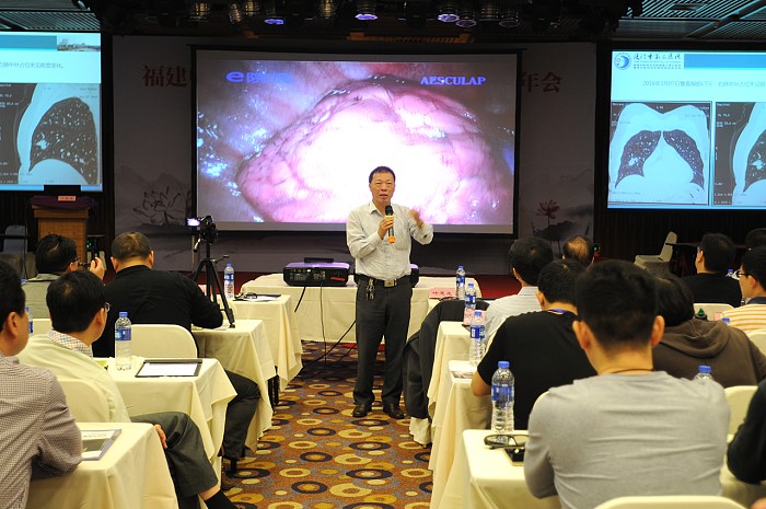 华西伦理片 车国卫教授讲授《肺癌术后管理及多中心研究》,福建医科大学附属协和伦理片 副院长陈椿教授团队讲授《单孔胸腔镜之福建协和经验》,福建医科大学附属第一伦理片 涂远荣教授团队讲授《食管癌淋巴结选择性清扫》,福建医科大学附属协和伦理片 康明强教授讲授《腔镜食管全系膜切除的实践体会》,福州总院陈炜生教授讲授《肺部结节诊疗技术进展》,厦大附属第一伦理片 院长姜杰教授讲授《3D胸腔镜在肺癌手术中的应用》,厦门中山伦理片 段红兵教授团队讲授《中山伦理片 肺癌治疗介绍》,市第三伦理片 院长叶惠龙教授讲授《胸部疾病极危征象的临床识别评估与处理》,还有其他各地市伦理片 的专家也在会上作了学术讲座。专题报告会的手术视频分享以及学术交流,展示了全国各地胸外科最新前沿技术及发展趋势。
