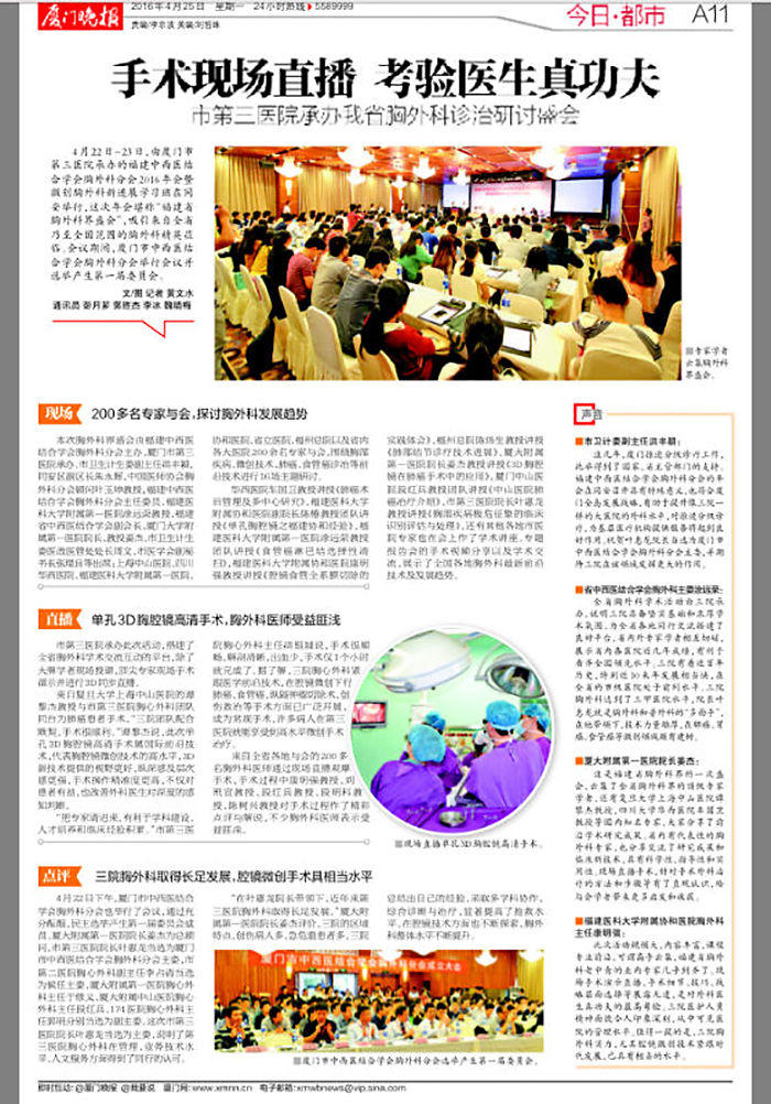 此次活动规模大,内容丰富,课程专业前沿,可谓高手云集,福建省胸外科老中青的业内专家几乎到齐了。现场手术演示直播,手术细节、技巧、战略层面选择等展露无遗,是对外科医生真功夫的最高考验。三院医护人员精神面貌令人印象深刻,从中可见伦理片 的管理水平。值得一提的是,三院胸外科实力,尤其腔镜微创技术紧跟时代发展,已具有相当的水平。