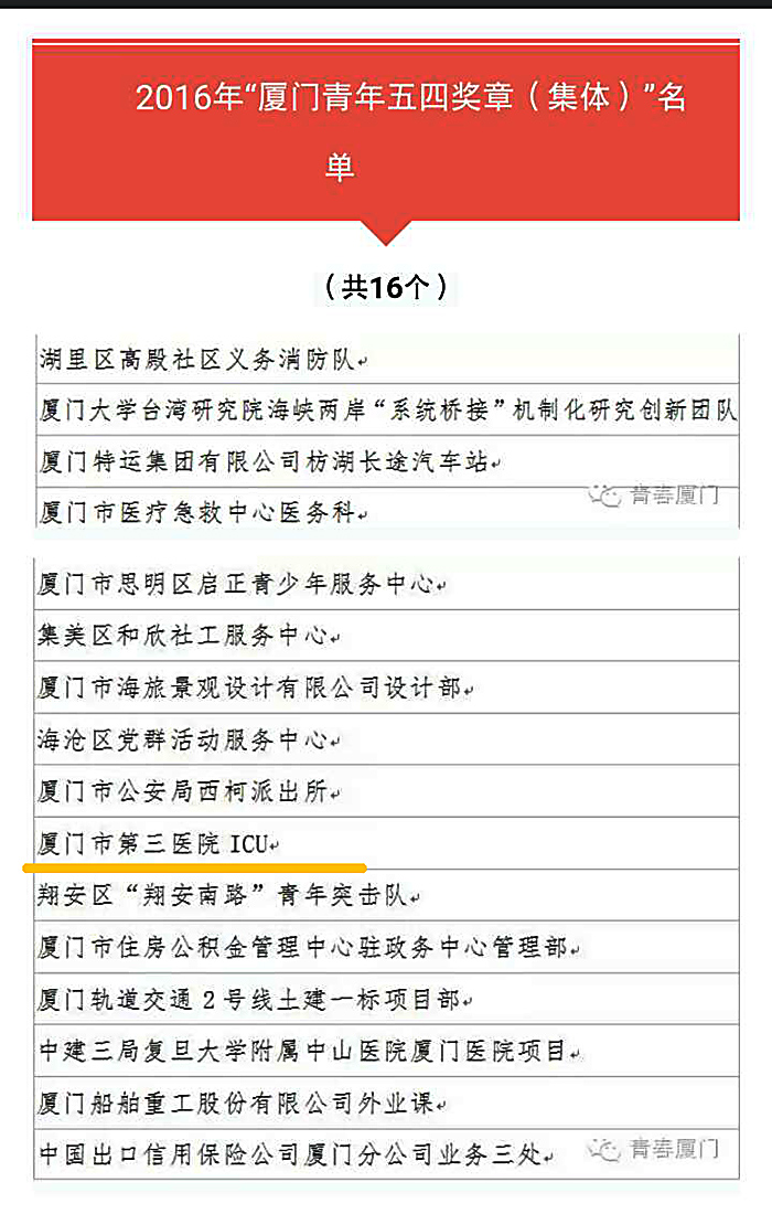 伦理片 ICU获“厦门青年五四奖章”集体殊荣