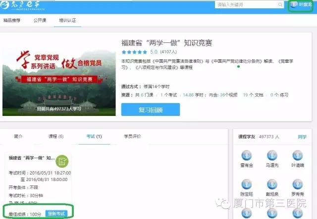 伦理片 全体党员积极参与福建省党员e家学习,知识测试。目前伦理片 党委下属6个党支部在职244名党员,除34名党员因网络无法登录外,210名党员均以高分的成绩圆满完成学习测试任务,大部分党员上班加班加点,利用午间、晚上时间刻苦学习、参与测试,有的党员不仅做一次,两次、三次甚至更多次,致力多学多理解多掌握多精通,学习精神可佳。据统计:全院党员实际完成测试人数率86.1%,平均分达93.7分。