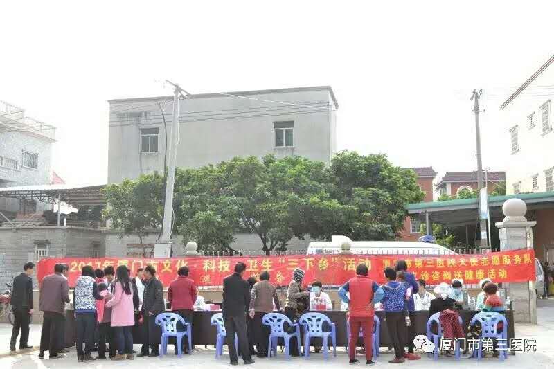 根据中共厦门市委宣传部《关于做好2017年全市文化科技卫生“三下乡”活动筹备工作的通知》和厦门市卫计委《关于参加2017年文化科技卫生“三下乡”活动的通知》精神,市三院天使志愿服务队于元月9日赴翔安区新圩镇后埔村开展“三下乡”医疗服务活动,为村民送医送药送健康。