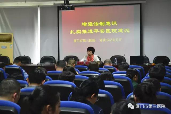 首先,彭月芗书记传达伦理片 “七五”普法教育工作规划、关于开展“大排查”“大化解”“大整治”活动的实施意见及《福建省卫生计生委办公室关于做好火灾隐患排查整治工作的通知》等文件精神,明确普法工作的指导思想、工作目标,将普法、依法治理工作纳入全院的工作目标管理体系,确保普法工作顺利实施。同时,列举在实际工作中遇到的典型案例,向与会人员普及需注意的法律问题。彭书记强调:全体职工要进一步增强宪法意识、公民意识、爱国意识、国家安全统一意识和民主法制意识,在全院形成依法执业、依法管理、崇尚宪法、遵守宪法、维护宪法权威的良好氛围。