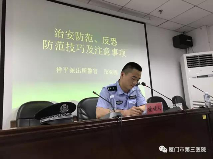 接着,祥平派出所警官张亚南结合伦理片 工作实际,讲解治安防范、反恐防范技巧及注意事项。
