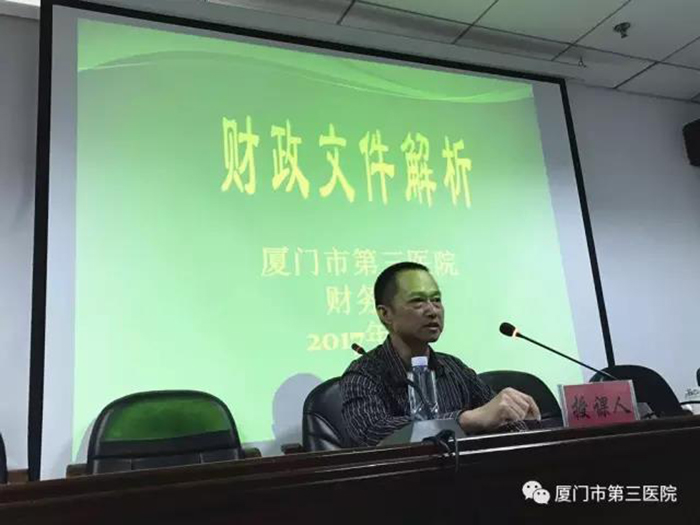 财务科科长林国民讲解相关伦理片 财政政策、财经纪律,如:《伦理片 关于重申公务消费实行公务卡结算报帐有关规定的通知》、《厦门市同安区财政局关于转发<厦门市市直机关跨区域临时性公务出行费用管理办法>的通知》及《伦理片 奖励性绩效工资分配方案》等。
