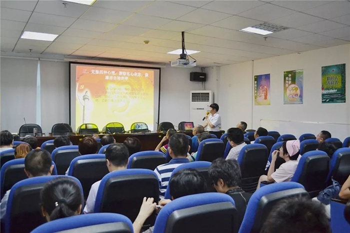 会上,党委书记彭月芗结合当前反腐倡廉建设形势,为新一届当选的党支部书记、支部委员以及重点岗位人员上了一堂题为《领导干部要做廉洁自律的表率》的党课。彭书记围绕“领导干部廉洁自律的基本要求”、“领导干部要自觉抵制不良风气”、“领导干部要做廉洁自律的表率”三个问题,深刻剖析了容易诱发腐败的思想根源,以案为鉴,以案促改,用真实的贪腐案例再次向领导干部敲响警钟。彭书记强调,领导干部要牢固树立热炉法则意识,算好人生七笔账,做到“六个带头”,按规矩办事、按规矩用权,使纪律规矩内化于心、外化于形,做制度的守护者和执行者,真正把党的事业植根于群众。接着,纪委书记黄建隆以《守纪律 讲规矩 适应党风廉政建设管理新常态》为主题,引导党员树立正确的世界观、人生观、价值观和政绩观,筑牢拒腐防变的思想防线,进一步增强廉洁从政、拒腐防变的主动性、自觉性和坚定性,不断强化底线思维和红线意识,做到警钟长鸣、防微杜渐。两堂党课内容深入浅出,内涵丰富,让与会人员受益匪浅。