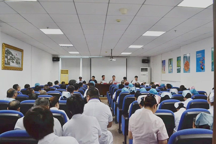 宣布完毕后,原任院长叶惠龙作了表态,他表示将坚决拥护区委、区政府的决定,衷心感谢组织上及全院职工对他工作的大力支持,使得三院日益发展,有了质的飞跃;同时叶院长也表示即使离开了工作岗位,但他仍心系三院,关心三院的每一步发展。随后,新任院长郭之通作表态发言,郭院长表示作为新任院长,他将使命在肩,初心如磐,不辜负组织和职工的信任,在新的岗位上认真履职,同心同德,匠心治院,共谋发展,为总院美好的明天而努力奋斗。