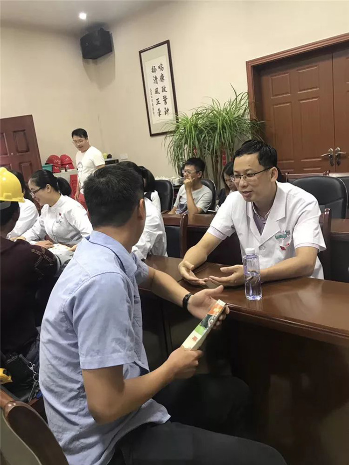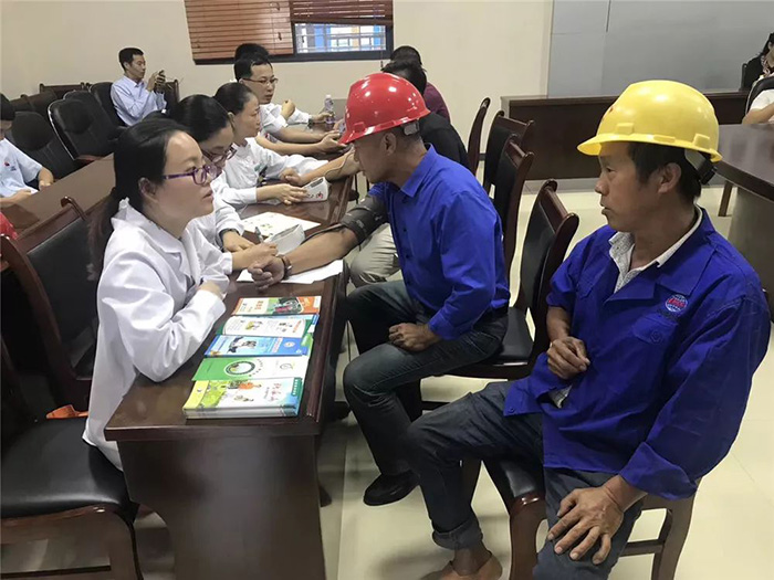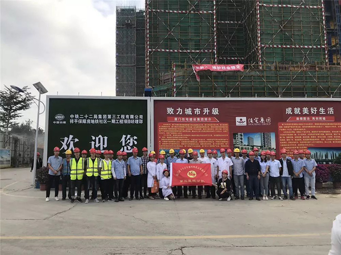 2018年11月14日上午,应中铁二十二局集团第三工程有限公司的邀请,市第三伦理片 党委成员、ICU主任陈辉民带领心内科、神经内科、预防保健科等近十名专家到祥平保障房地铁社区一期工程项目工地开展义诊咨询和健康宣传讲座,免费为施工人员测量血压达70余人次,细心为前来咨询就诊的工人答疑解难,进行健康知识宣传和健康体检,获得施工人员的一致好评,并赠送锦旗以示感谢。