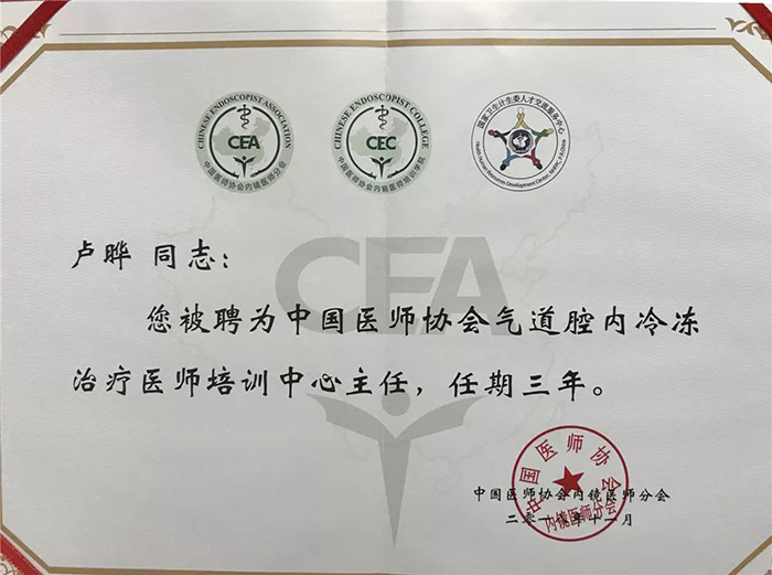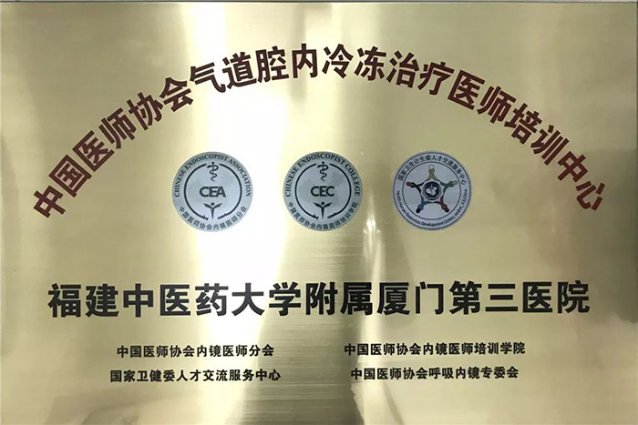 伦理片 荣获“中国医师协会气道腔内冷冻医疗医师培训中心”称号