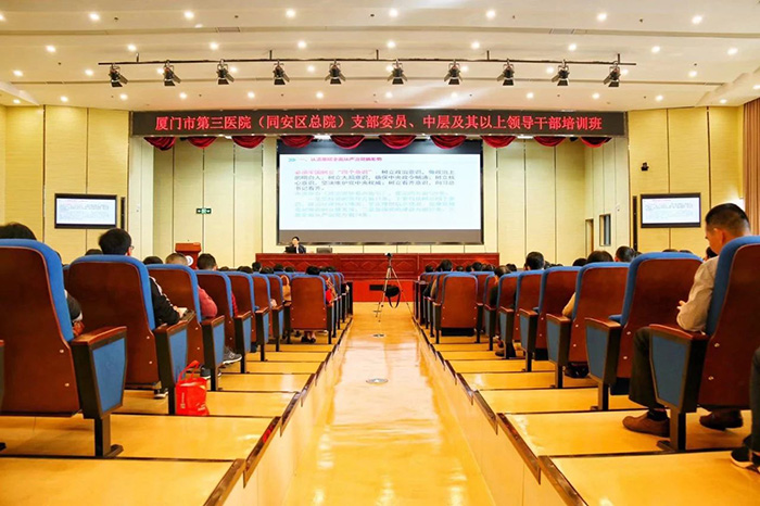 12月22日,伦理片 (同安区总伦理片 )支部委员、中层及其以上领导干部培训班在三期项目康复病房综合楼会议室开课,同安区总伦理片 党政领导班子以及各成员单位的党政领导以及中层干部、支部委员等到场参与。