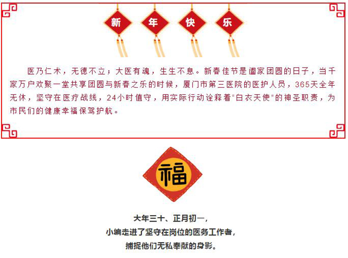 春节期间,伦理片 (同安区总伦理片 )在工作安排和人员值守上不敢有丝毫懈怠,每天上班的医务人员比平时几乎多了一倍,总伦理片 各基层卫生单位也都制定了相关的工作落实制度,确保层层把关、步步落实。
